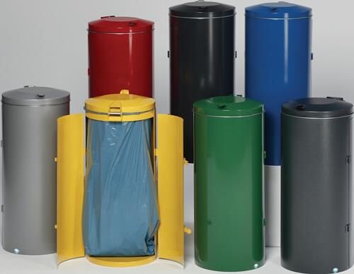 mit Doppeltür · komplett geschlossen · für den Außen- und Innenbereich · für 120-l-Kunststoff- oder Papiersäcke · gefertigt aus verzinktem Stahlblech mit festem Boden und Metalldeckel · feuersicher · H 980 x Ø 500 mm · Gewicht 20 kg · Einwurföffnung ca. Ø 390 mm Weitere technische Eigenschaften: · Ø: 500mm · Ausführung: mit Doppeltür · Gewicht: 20kg · Einwurföffnung-Ø: 390mm