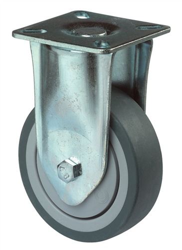 BS ROLLEN Bockrolle 100mm 80kg VG, NW-Nr.: 3000275293 95x70mm BS ROLLEN Vollgummireifen blaugrau, Platte 95x70mm