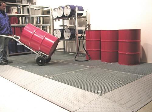 aus Stahl · Bauhöhe 78 mm · nach Übereinstimmungserklärung (ÜHP) gemäß StawaR, zugelassen für entzündbare Flüssigkeiten der GHS-Kategorien 1-3, gewässergefährdende Flüssigkeiten der GHS-Kategorien 1-4 · aus 3 mm Stahl · mit verzinktem Gitterrost, Tragfähigkeit 5000kg/m² (bei gleichmäßig verteilter Last) · mit Hubwagen und Stapler leicht befahrbar · Radlast max. 500 kg