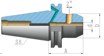 mit Steilkegel nach DIN 69871 AD/B · mit zentraler Kühlmittelzufuhr und wiederverschließbaren Kühlkanälen am Bund · zur Aufnahme von Werkzeugen mit Zylinderschaft und geneigter Spannfläche nach DIN 1835-E · Bohrungstoleranz H4 · eingebaute Anschlagschraube ermöglicht eine exakte Längeneinstellung und zusätzliche Abstützung des Werkzeuges