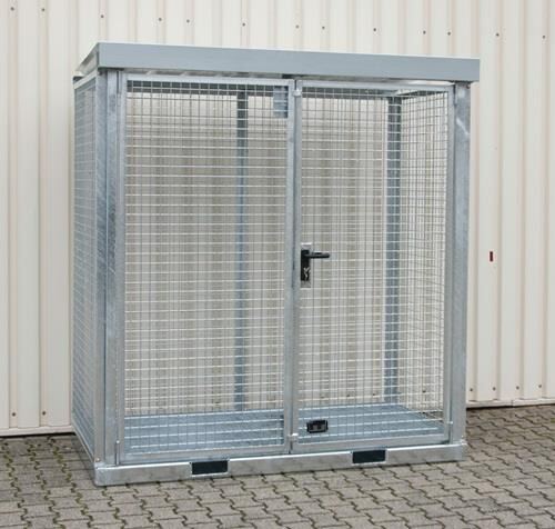BAUER Gasflaschencontainer B2115xT1155xH2260mm verzinkt,m.Dach m.Gitterrostboden BAUER