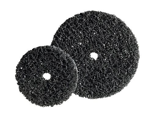 sehr grobes und aggressives Reinigungsvlies, durchsetzt mit Spezialkorn · hohe Abtragleistung · lange Standzeit · sehr gut geeignet zur Rost- und Lackentfernung · Reinigen von Schweißnähten · Entfernen von Klebern und Unterbodenschutz · Reinigen von Betonplatten · Beseitigung von Zunder · Bohrung 13 mm Ø · zur Verwendung mit Spannschaft Art.-Nr. 4000 841 846, 4000 841 847Weitere technische Eigenschaften:· Farbe: schwarz