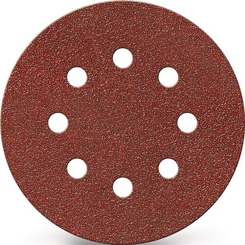 Korund · universell für alle Schleifvorgänge geeignet · Entfernen von Rost und Farbe · Schleifen von Holz und Metallen · passend zu allen Exzenterschleifern mit 6- oder 8-fach gelochter Aufnahmeplatte · Absauglöcher Ø 10 mm · kletthaftend · Für Elektrowerkzeuge der Fabrikate AEG, Atlas Copco, Black & Decker, Bosch, DeWalt, ELU, Festool, Hitachi, Kress, Makita, Metabo und Skil
