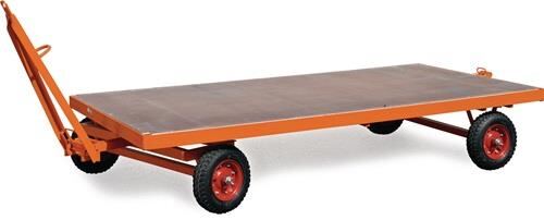 Grundrahmen aus T-Profil 80/80/8 mm · alle 4 Ecken abgerundet und mit Rohrhülsen zum Einstecken von Ladeflächenaufbauten, optionales Zubehör (Rungen, Bordwänden etc.) · Lackierung RAL 2004 reinorange · stabile rutsch- und wetterfeste Siebdruckplatte unterlegt mit wetterfester 25 mm starker OSB Platte · Deichsel Ø 35 mm · Deichsel-Schnellwechselsystem mit Fallsicherung · Anhängerkupplung mit Bolzen Ø 30 mm · 1-Achs-Drehschemel-Lenkung mit Kugel-Drehkranz · wendig und wartungsarm · Risikobeurteilung gem. DIN EN ISO 14121-1 · max. Fahrgeschwindigkeit 6 km/h Weitere technische Eigenschaften: · Ausführung: 1-Achs-Drehschemel-Lenkung · Radbreite: 60mm