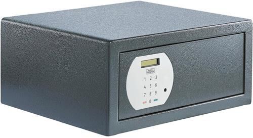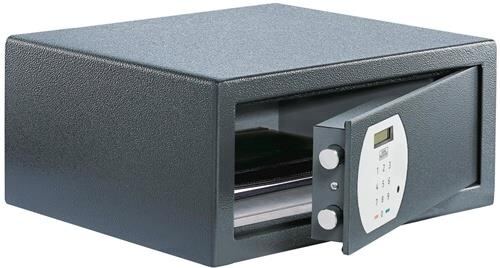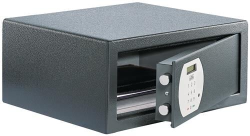 robuster einwandiger Korpus · Tür doppelwandig · verstärkte Riegelbolzen · Aufbohrschutz · für Wand- und Bodenbefestigung vorgerichtet (inkl. Befestigungsmaterial) · ideal für den Einbau in Schränke und andere Möbelstücke: Größe PS 130 mit Ordnertiefe · modernes, einfach programmierbares Elektronikschloss · Bequeme Handhabung durch motorgetriebene Verriegelung und automatische Türöffnung · verschiedene Öffnungsmethoden: Generalcode für den Hotelier · änderbarer Benutzercode für den Gast · verständliche Kurzanleitung für den Gast · haptisches Feedback bei Tastendruck · klares und gut lesbares Display · Batteriebetrieb mit 1,5 V Mignon (inklusive 4 Batterien) Weitere technische Eigenschaften: · Türhöhe: 129mm · Türbreite: 331mm · Anzahl möglicher Nutzer: 2 Code + 2 Notschlüssel · Lagerung BTM: Lagerung nicht zulässig · mögliche Befestigungspunkte: 2x Boden / 2x Rückwand · Notschloss (ja/nein): Ja · Ordnertiefe (ja/nein): Ja · Türöffnung HxB in mm: 129 x 331mm · Verschlusssystem: Elektronikschloss · Wandstärke hinten: 2,00mm · Wandstärke li.: 2,00mm · Wandstärke oben: 2,00mm · Wandstärke re.: 2,00mm · Wandstärke unten: 2,00mm · max. Versicherungssumme gewerblich bis €: nach Vereinbarung des Versicherers