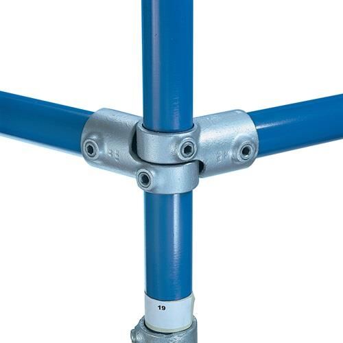 "Die Alternative zum Schweißen!" System KEE KLAMP geeignet zur Konstruktion von Geländern, Ladeneinrichtungen, Schutzvorrichtungen, Bühnenbauten und Absperrungen · Einfachste Montage - jederzeit wieder demontierbar · Sicher, stabil und gewichtsparend · Hohe Belastbarkeit · KeeKoat® beschichtete Stellschrauben – 4-fach höhere Korrosionsbeständigkeit · ThredKoat® Gewinde-Rostschutz · Rohrverbinder erhältlich in den Größen von 19,05 mm (3/4") bis 50,80 mm (2") · Als Zubehör für das System gibt es Reduzierstücke zur Verbindung verschiedener Rohrgrößen und Einzelklemmen für Füllelemente wie Drahtgitter · Material Guss, verzinkt mit Festigkeitsanforderung nach DIN EN 1562 + 1563, gefertigt nach ISO 9001 · Erfüllt die Anforderungen der Berufsgenossenschaft Hinweis: Die Bohrung ist variabel, ihre Größe hängt von der Wanddicke des Rohres ab! Weitere technische Eigenschaften: · Typ: 19