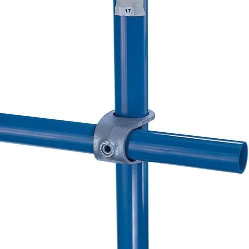 "Die Alternative zum Schweißen!" System KEE KLAMP geeignet zur Konstruktion von Geländern, Ladeneinrichtungen, Schutzvorrichtungen, Bühnenbauten und Absperrungen · Einfachste Montage - jederzeit wieder demontierbar · Sicher, stabil und gewichtsparend · Hohe Belastbarkeit · KeeKoat® beschichtete Stellschrauben – 4-fach höhere Korrosionsbeständigkeit · ThredKoat® Gewinde-Rostschutz · Rohrverbinder erhältlich in den Größen von 19,05 mm (3/4") bis 50,80 mm (2") · Als Zubehör für das System gibt es Reduzierstücke zur Verbindung verschiedener Rohrgrößen und Einzelklemmen für Füllelemente wie Drahtgitter · Material Guss, verzinkt mit Festigkeitsanforderung nach DIN EN 1562 + 1563, gefertigt nach ISO 9001 · Erfüllt die Anforderungen der Berufsgenossenschaft Hinweis: Die Bohrung ist variabel, ihre Größe hängt von der Wanddicke des Rohres ab! Weitere technische Eigenschaften: · Typ: 17