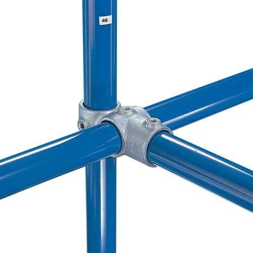"Die Alternative zum Schweißen!" System KEE KLAMP geeignet zur Konstruktion von Geländern, Ladeneinrichtungen, Schutzvorrichtungen, Bühnenbauten und Absperrungen · Einfachste Montage - jederzeit wieder demontierbar · Sicher, stabil und gewichtsparend · Hohe Belastbarkeit · KeeKoat® beschichtete Stellschrauben – 4-fach höhere Korrosionsbeständigkeit · ThredKoat® Gewinde-Rostschutz · Rohrverbinder erhältlich in den Größen von 19,05 mm (3/4") bis 50,80 mm (2") · Als Zubehör für das System gibt es Reduzierstücke zur Verbindung verschiedener Rohrgrößen und Einzelklemmen für Füllelemente wie Drahtgitter · Material Guss, verzinkt mit Festigkeitsanforderung nach DIN EN 1562 + 1563, gefertigt nach ISO 9001 · Erfüllt die Anforderungen der Berufsgenossenschaft Hinweis: Die Bohrung ist variabel, ihre Größe hängt von der Wanddicke des Rohres ab! Weitere technische Eigenschaften: · Typ: 46