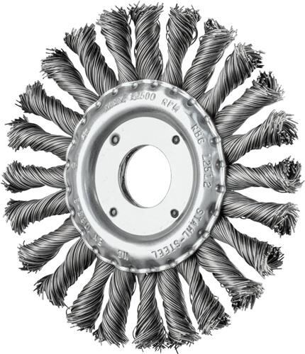 COMBITWIST-Zopfung · sehr aggressiv arbeitende Bürste · für schwere Bürstarbeiten im Metallbau wie Entzundern, Entrosten, Entgraten, Putzen von Schweißnähten und Entfernen von Kleberresten geeignet · höchste Standzeit sowie Materialabtrag · hoher Arbeitskomfort durch ruhigen Lauf ohne Rückschlagen der Bürste · zur Bearbeitung von Ecken und Kanten geeignet, da sich die Zöpfe weniger aufdrehen · Bohrung 22,2 mm Ø