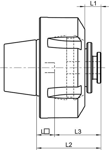 mit Schnellwechsel-Funktion · zur Aufnahme von Gewindebohrern, diese werden über die Schnellspanneinrichtung festgehalten · die Drehmomentübertragung erfolgt über den Schaft-Vierkant · für unterschiedliche Schaftmaße sind verschiedene Einsätze erforderlich · Einsatz nur in Verbindung mit Aufnahmeadapter Synchro STL (siehe Größe) · zum Ausgleich von Steigungsdifferenzen des Gewindeschneidwerkzeuges, synchronisierte Spindel vorausgesetzt · Minimallängenausgleich auf Druck und Zug (+ 0,5 mm / - 0,2 mm) · für Rechts- und Linksgewinde · Weitere technische Eigenschaften L2: 41mm · L1: 37mm · D2: 25mm · Größe: 5 · L3: 32mm
