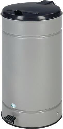 aus verzinktem Stahlblech, pulverbeschichtet oder Edelstahl, poliert · für 60-l-Kunststoffsäcke · mit bequemer Fußpedalbetätigung · Einwurföffnung-Ø ca. 350 mm, Ø 450 x H 700 mm · Gewicht ca. 7 kg Weitere technische Eigenschaften: · Gewicht: ca. 7kg