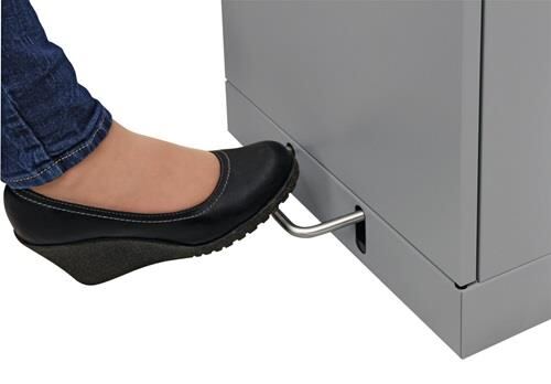 Stahlblech pulverbeschichtet · Korpus graualu-Struktur · feuer- und geruchshemmend · geprüft selbstlöschend (nur Ausführung mit verzinktem Innenbehälter) · Innenbehälter aus verzinktem Stahlblech oder Edelstahl · flüssigkeitsdicht im Bodenbereich · Flügeltür mit Magnetverschluss und Vierkantverriegelung · selbstschließende Einwurfklappen mit Kantenschutz, Bedienung erfolgt von Hand oder durch Trethebel-Mechanik · mit ausziehbarer Abfallsackhalterung, rollengelagert für 100 % Auszug oder verzinktem Innenbehälter · Stellschraube im Bodenbereich gewährleistet einen sicheren Stand · Kennzeichnungs-Etiketten mit Aufschrift inkl. Piktogramme nicht im Lieferumfang enthalten · · Inhalt 60 l - H 900 x B 400 x T 380 mm · Inhalt 75 l - H 1000 x B 400 x T 380 mm · Inhalt 120 l - H 1100 x B 450 x T 450 mm