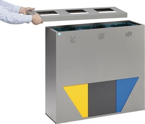 VAR Wertstoffsammler H933xB1027xT330mm Inh.3x89l antik-silber Beh.farbig VAR